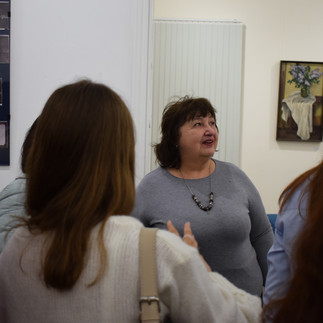 Виставка представлена у двох залах: «Відновлення», в якій містяться роботи зі збірки музею, що пройшли реставрацію під керівництвом Інни Русіної, і зал «Натхнення» з експозицією живописного доробку Інни Русіної у жанрах натюрморту, портрету та пейзажу. Інна Аркадіївна Русіна один із провідних фахівців Національного науково-дослідного реставраційного центру України та майстерна художниця. Як професіонал у своїй справі вона поділилася цікавою інформацією про тонкощі роботи у реставраційній сфері та власним унікальним досвідом роботи над деякими кейсами. Екскурсія допомогла всім ближче торкнутися історії мистецтва та нюансам музейної діяльності, що було дуже корисно студентам.